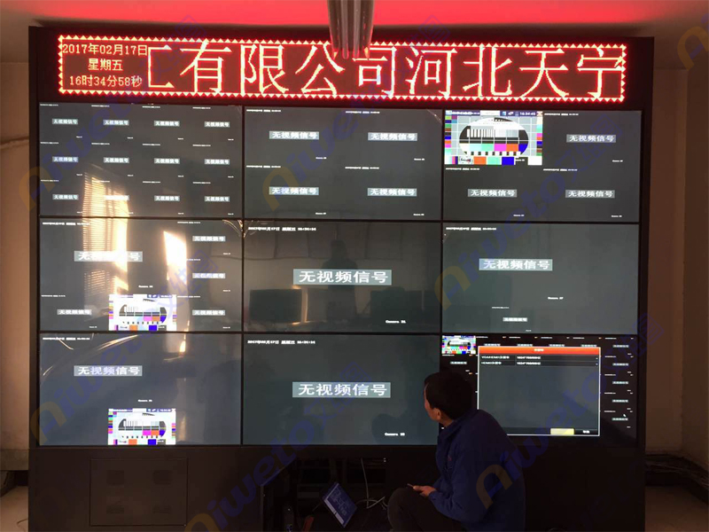 河北天寧化工有限公司是國家民用爆破器材定點生產企業。公司主要產品有:膨化硝銨炸藥、乳化炸藥,現場混裝銨油炸藥、重銨油炸藥和現場混裝乳化炸藥,工業電雷管和導爆管雷管。為響應國家號召、樹立公眾服務的需求,由商用顯示解決方案商深圳市艾維圖科技有限公司打造一套3行3列液晶拼接系統。