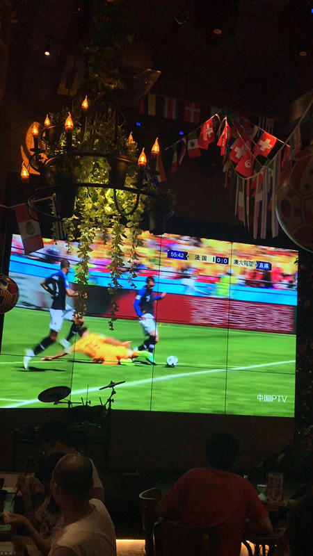 此次世界杯期間,艾維圖科技早早的為許多餐廳、酒吧安裝了視覺感爆棚的液晶拼接屏,酒吧是許多球迷喜歡聚集的地方,尤其是許多足球主題酒吧更是球迷熱衷去的地方。在LED大屏下,高清的賽事畫面,動(dòng)感的音樂,配上讓人迷醉的美酒,還有一群志同道合的球迷朋友,還有什么比這些來得更酣暢淋漓的呢?