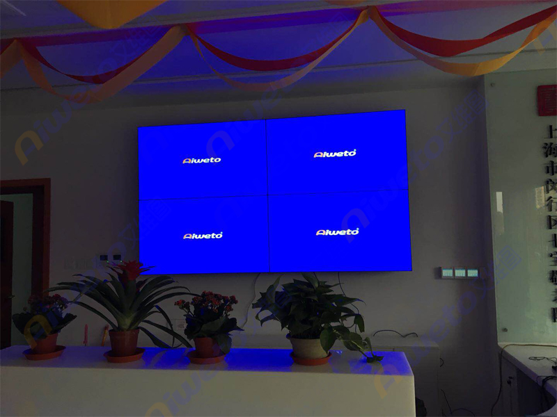 根據上海閔行區七寶敬老院的實際情況, 本來按效果來說應該安裝液壓前維護支架式,但是由于一些原因,只能安裝成了壁掛,這也是一大瑕疵。但是這款2X2的壁掛液晶拼接系統也為上海閔行區七寶敬老院的所有工作人員促進了工作效率,從節能、顯示方式、超高的清晰度等眾多優勢,無一不彰顯出液晶拼接屏的獨特魅力。