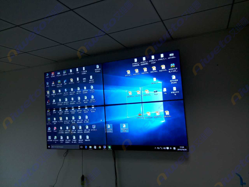 通過對客戶使用需求和部署環境的認真研究和考察,Aiweto(艾維圖)科技工程師給出了多套相關解決方案,最終選用了由4臺(Aiweto) 47寸液晶拼接單元組成的2×2大屏幕液晶拼接墻。(Aiweto) 47寸液晶拼接單元采用工業級面板,采用先進的集成處理芯片,性能穩定,運動圖像補償等獨有的先進技術,有效的保證了輸出圖像的效果,支持7×24小時開機,拼接邊縫小,適合大屏液晶拼接項目應用。