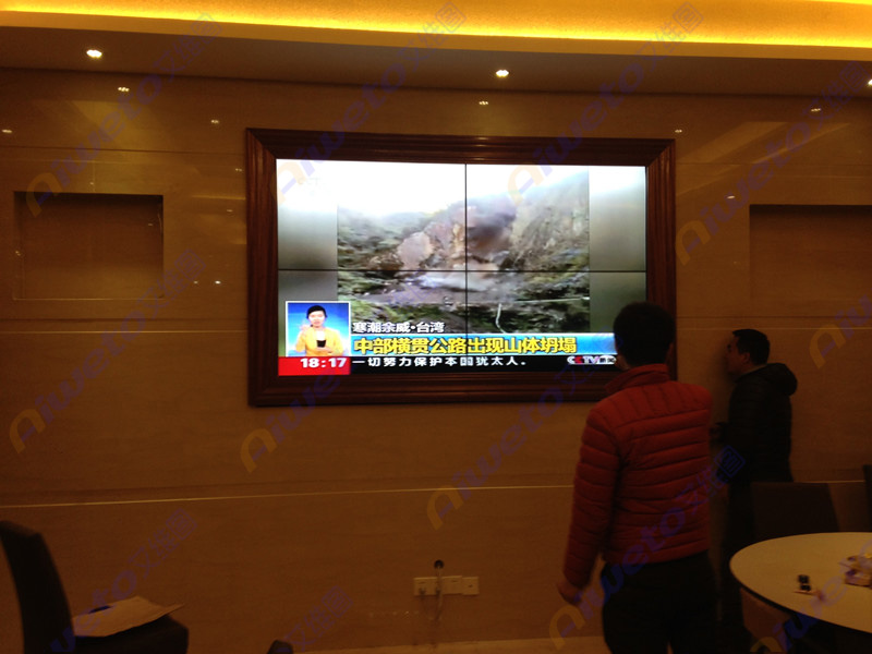 通過對客戶使用需求和部署環境的認真研究和考察,Aiweto(艾維圖)科技工程師給出了多套相關解決方案,最終選用了由4臺(Aiweto) 47寸3.5mm液晶拼接單元組成為2×2大屏幕液晶拼接墻。46寸33.5mm液晶拼接單元采用先進的集成處理芯片,性能穩定,運動圖像補償等獨有的先進技術,有效的保證了輸出圖像的效果,支持7×24小時開機,拼接邊縫小,適合大屏液晶拼接項目應用。