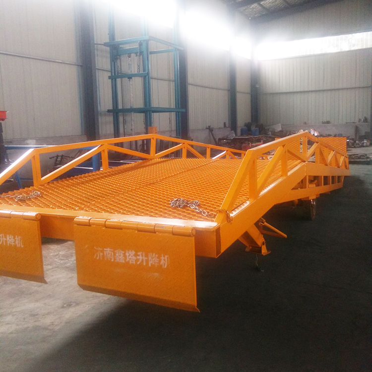 移動(dòng)式液壓登車橋是與叉車配合使用的貨物裝卸輔助設(shè)備,可根據(jù)汽車車廂的高低調(diào)節(jié)高度,叉車可以直接通過本設(shè)備駛?cè)胲噹麅?nèi)部進(jìn)行貨物的批量裝卸,僅需單人作業(yè),即可實(shí)現(xiàn)貨物的快速裝卸。它使企業(yè)減少大量勞力,提高工作效率,獲取更大經(jīng)濟(jì)效益。