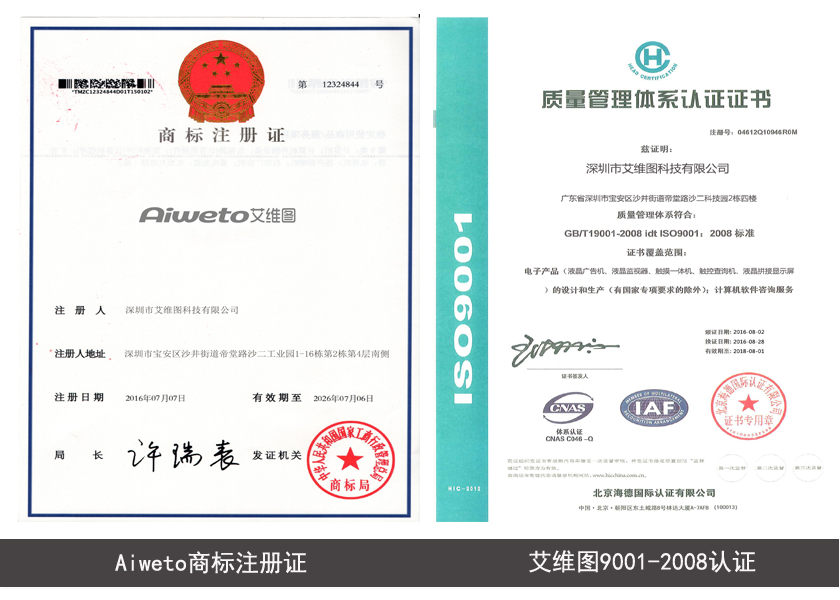 艾維圖科技是中國商用顯示大屏行業(yè)品質(zhì)與信心的保證,公司產(chǎn)品先后通過國際國內(nèi)CE、ETL、GOST、CCC、UL、CUL品質(zhì)認(rèn)證及相關(guān)ROHS認(rèn)證,嚴(yán)格在ISO9001:2008質(zhì)量認(rèn)證體系下完善產(chǎn)品質(zhì)量管理,注重日常的7S管理標(biāo)準(zhǔn)的實(shí)踐與運(yùn)用,在工藝流程上嚴(yán)格IQC、IPQC、QC、CFQC、QA的各環(huán)節(jié)質(zhì)檢工程與供應(yīng)鏈管理。基本引領(lǐng)和實(shí)現(xiàn)了行業(yè)內(nèi)LED顯示屏產(chǎn)品的規(guī)格標(biāo)準(zhǔn)化、生產(chǎn)批量化的獨(dú)特經(jīng)營模式,在國際國內(nèi)贏得了業(yè)界良好口碑,對規(guī)范行業(yè)標(biāo)準(zhǔn)具有深遠(yuǎn)影響。